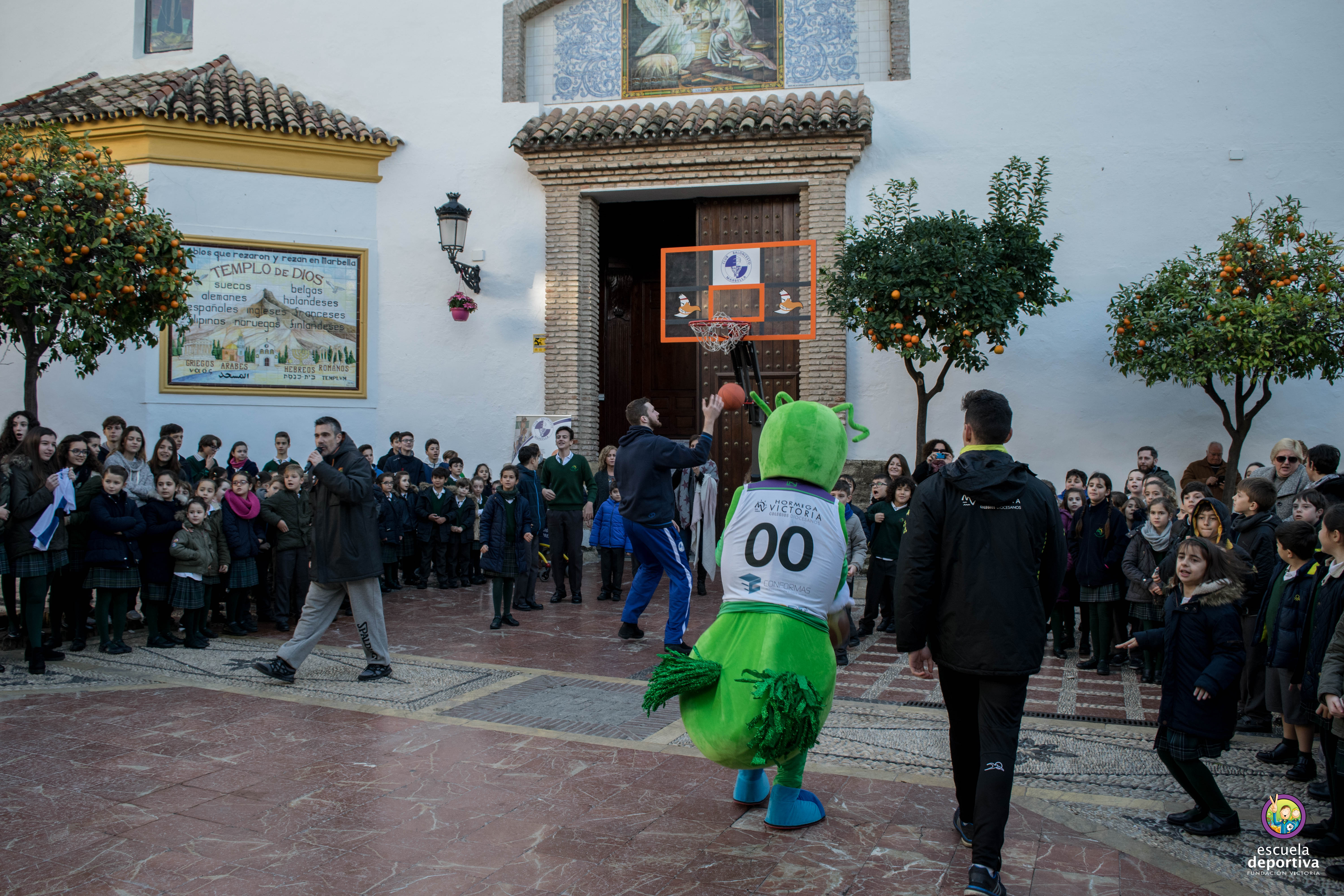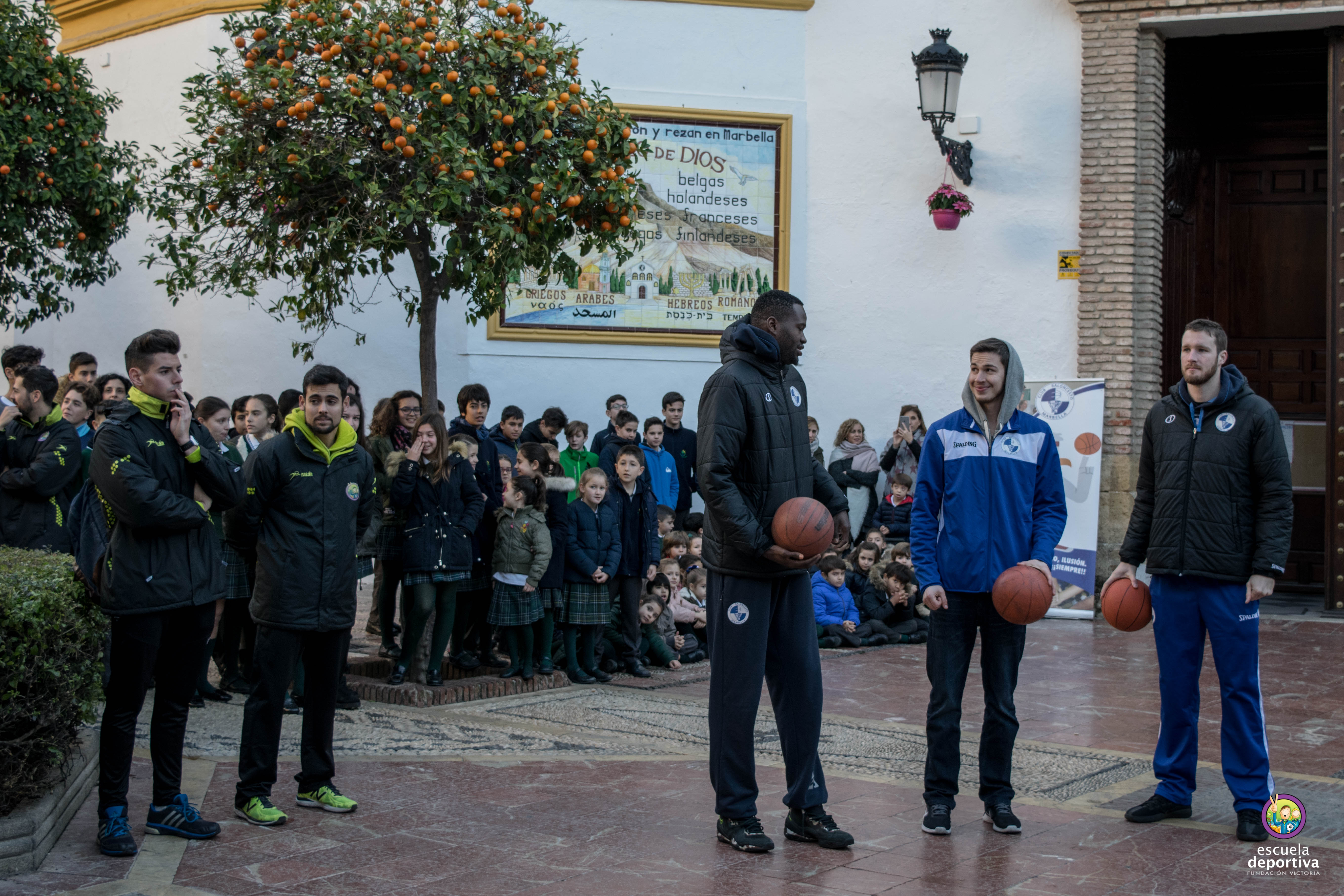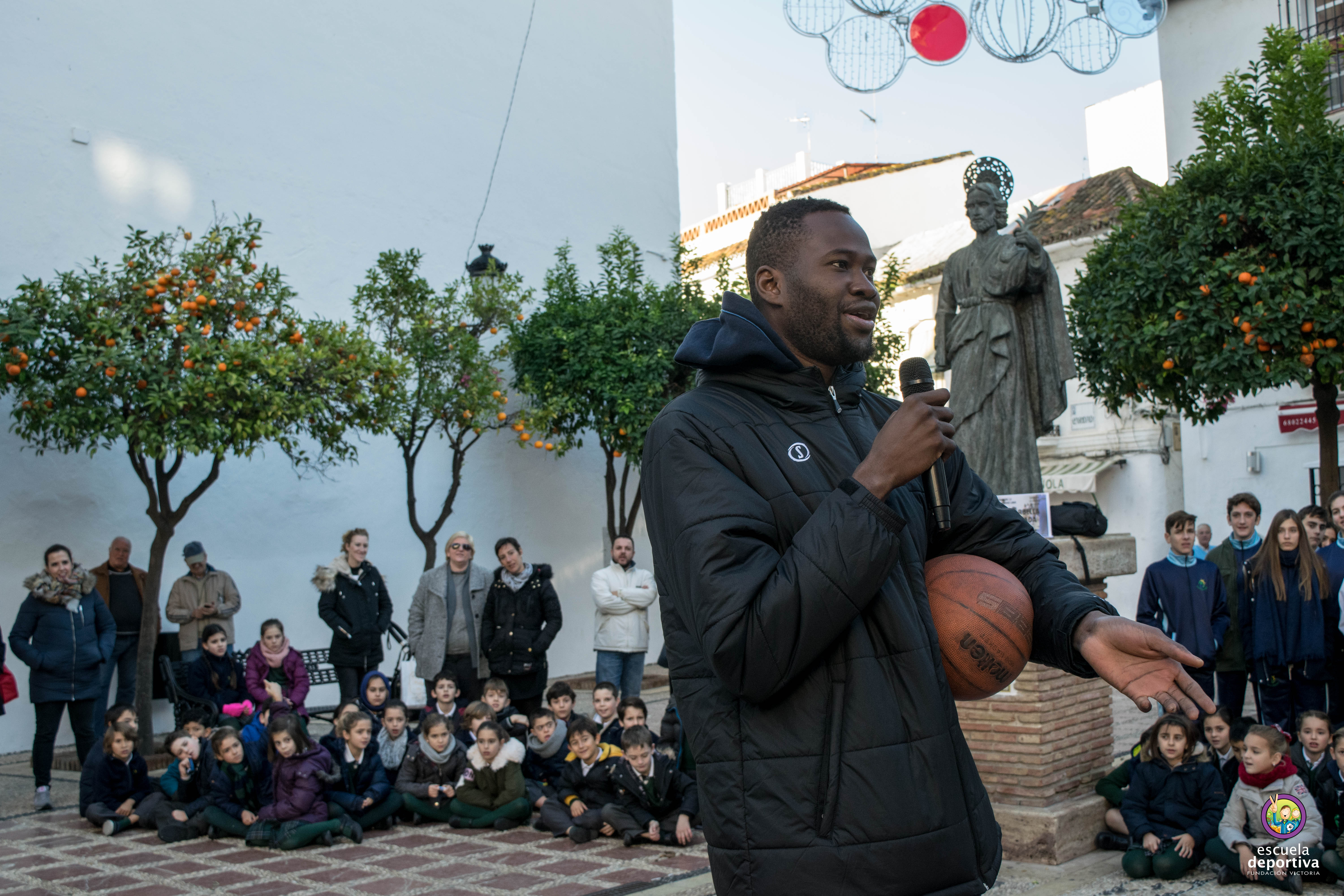 Como inicio de la colaboración el jueves 11 de enero se ha llevado a cabo una actividad lúdica y formativa en la Plaza de la Iglesia con la presencia de 3 jugadores del equipo senior del CB Marbella junto a su entrenador y Director Técnico Francis tomé.