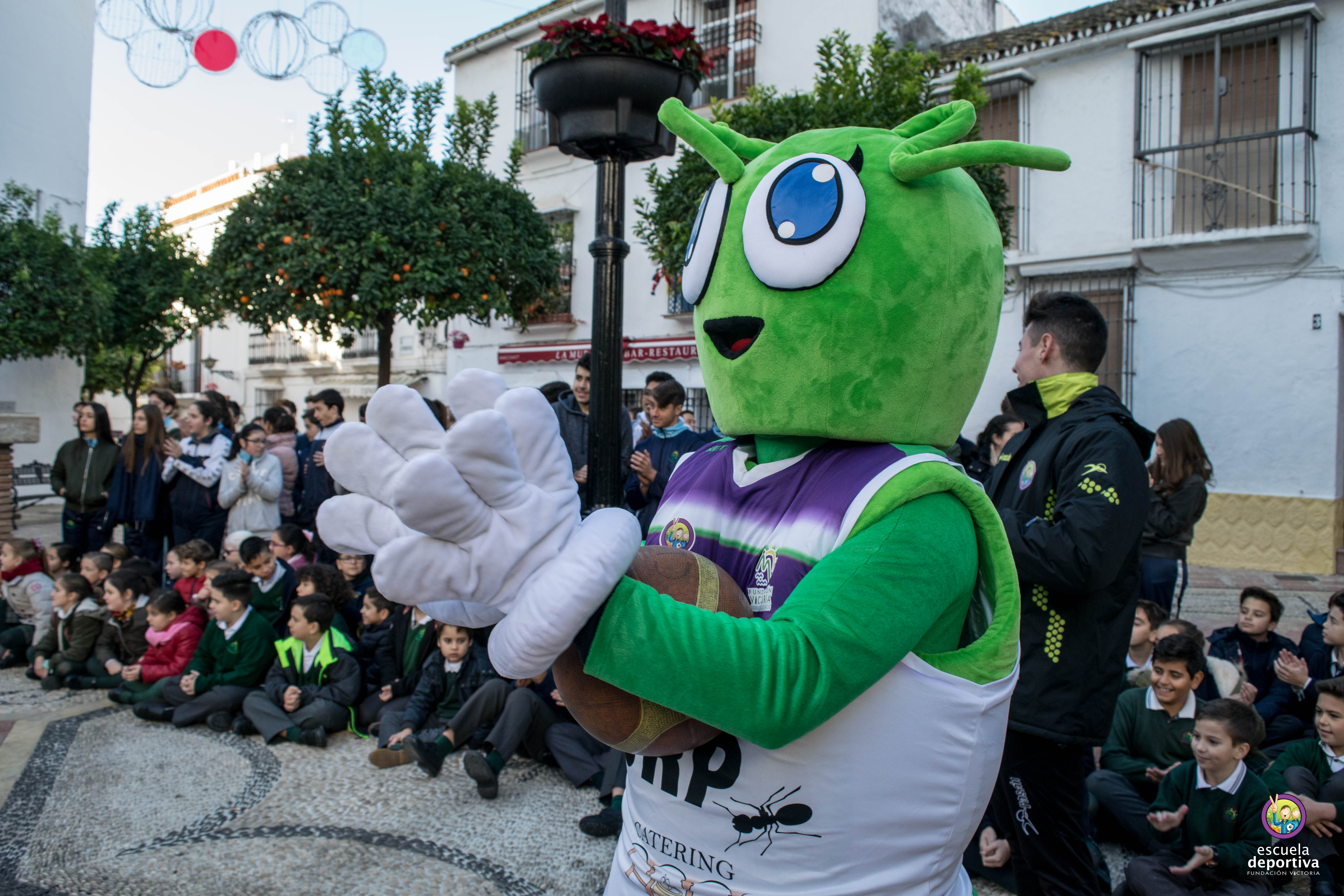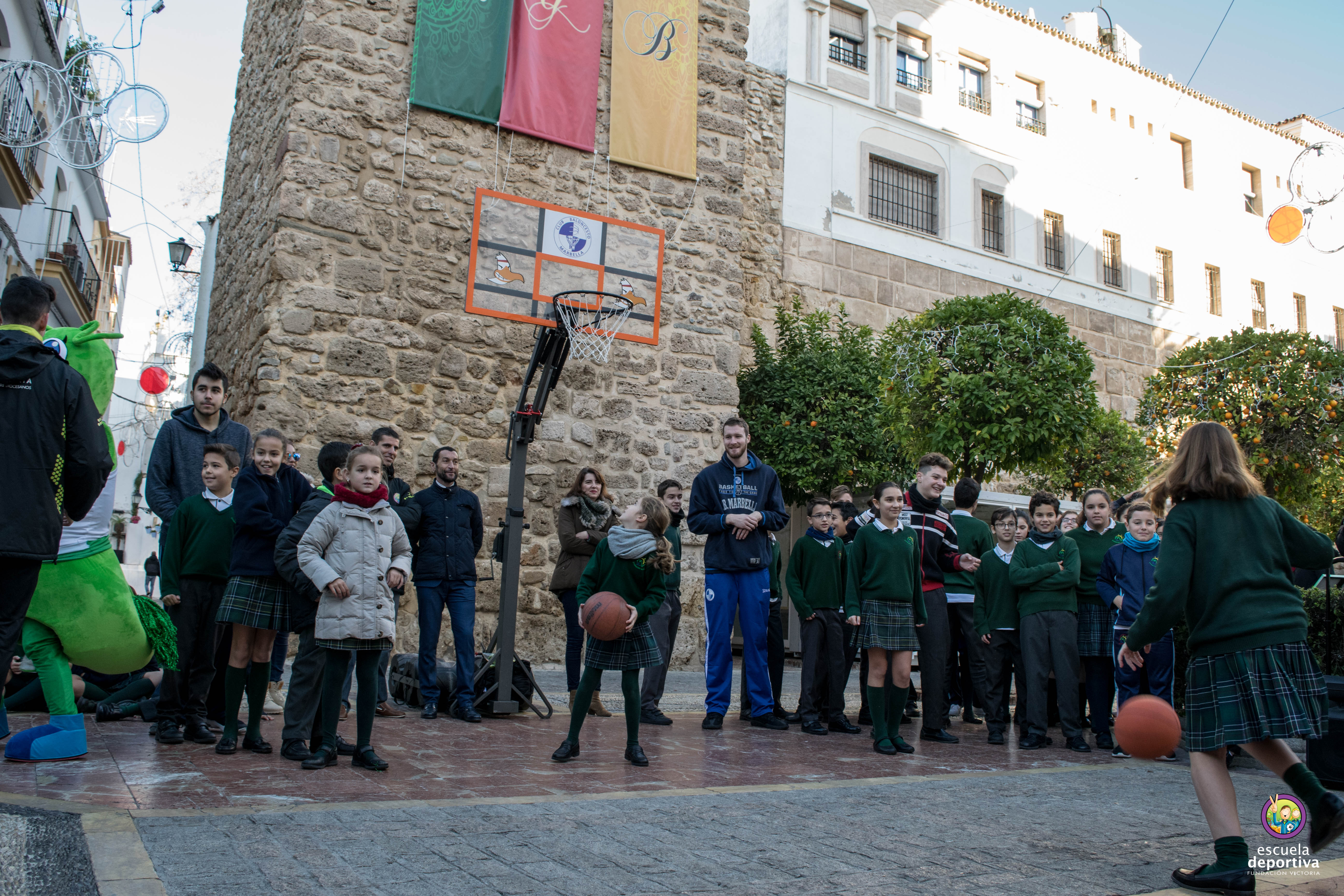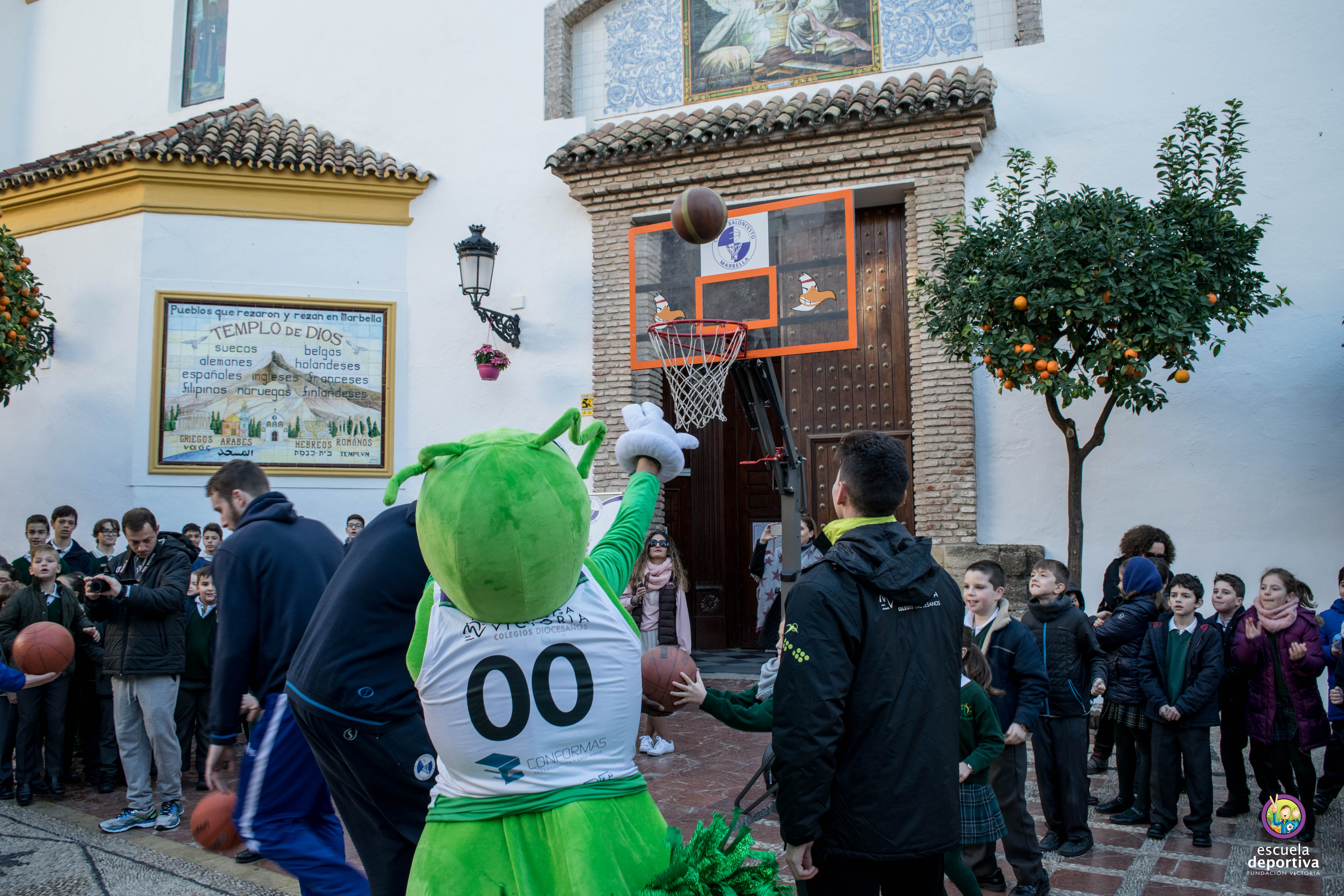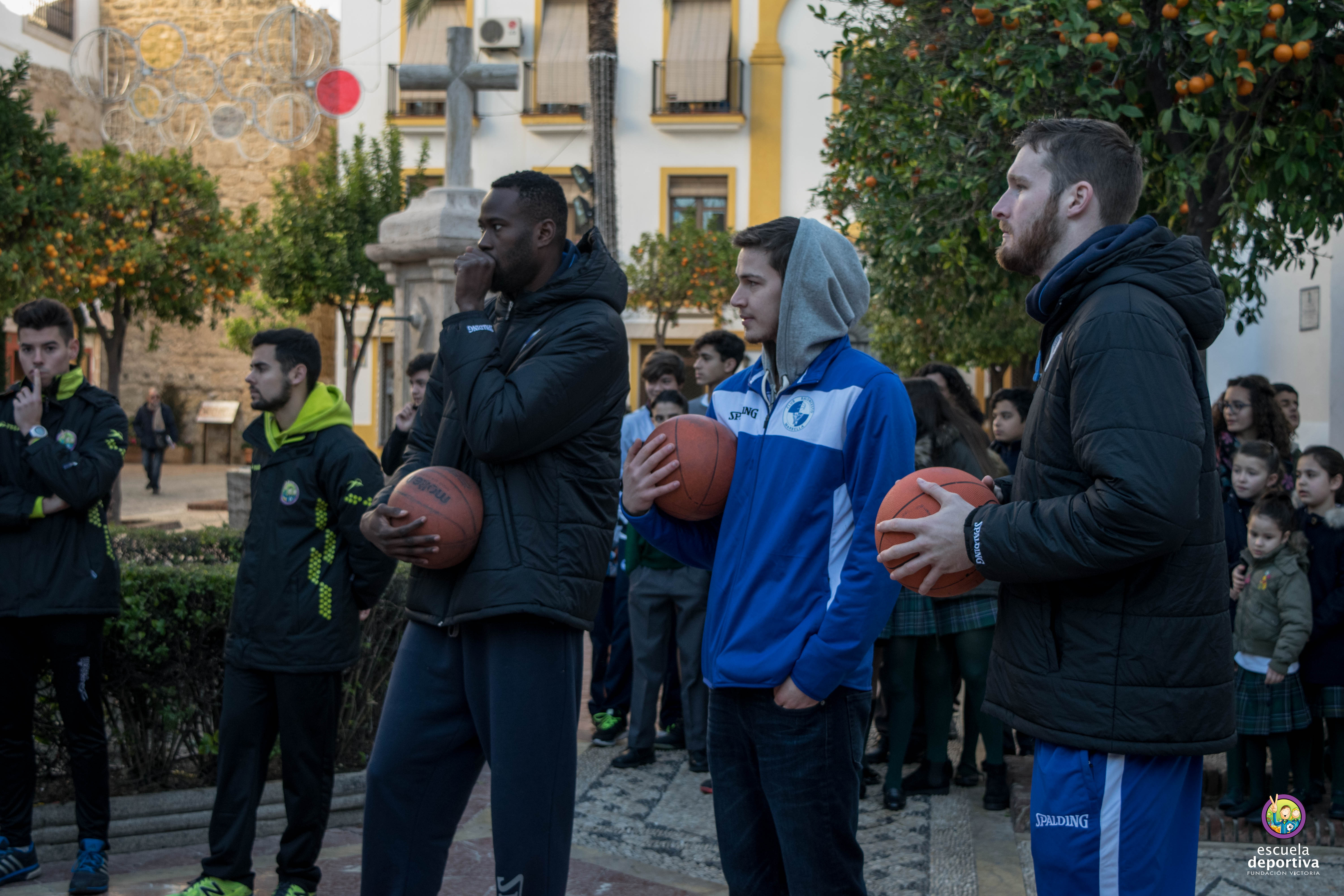 Como inicio de la colaboración el jueves 11 de enero se ha llevado a cabo una actividad lúdica y formativa en la Plaza de la Iglesia con la presencia de 3 jugadores del equipo senior del CB Marbella junto a su entrenador y Director Técnico Francis tomé.