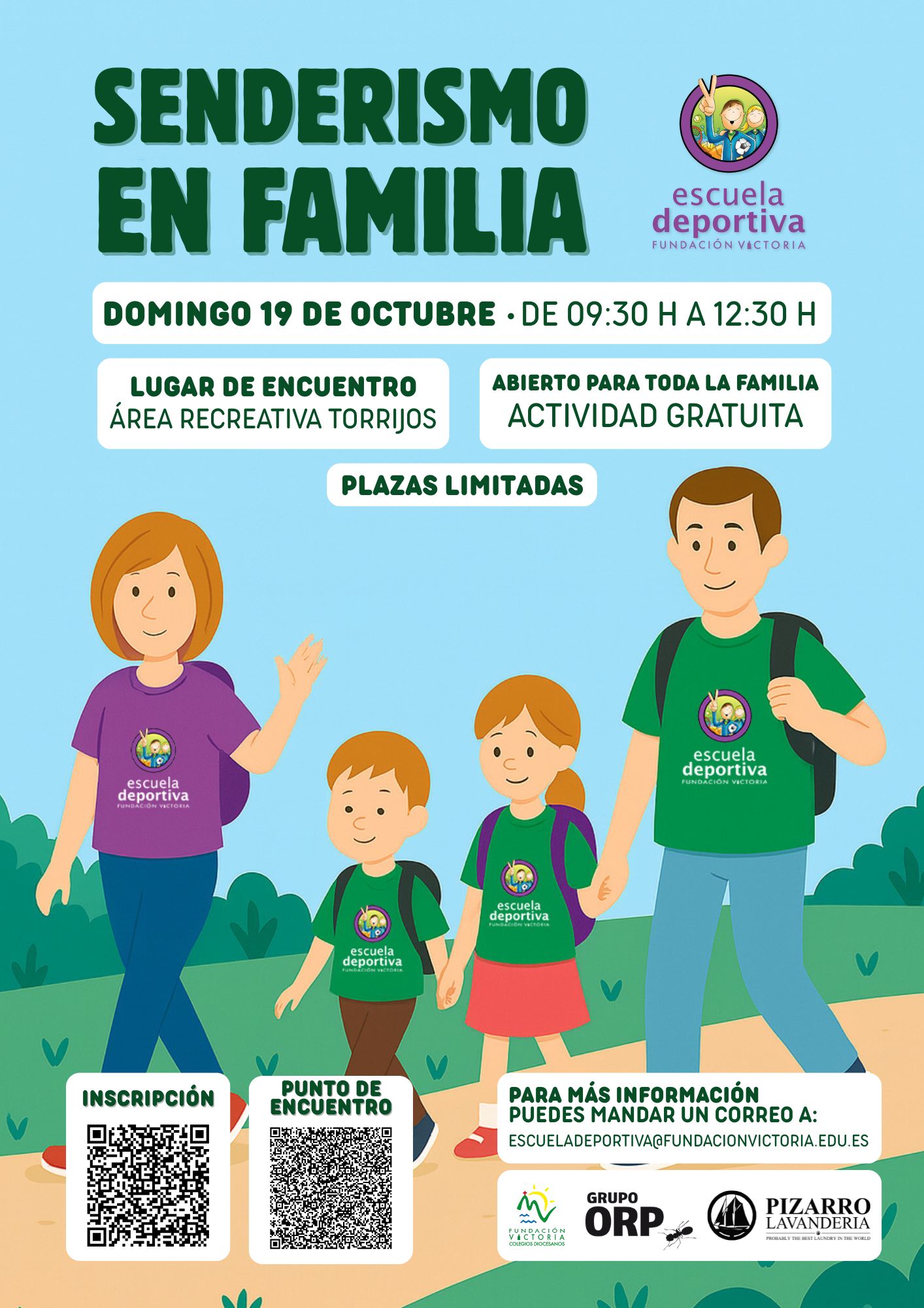 La Escuela Deportiva Fundación Victoria celebrará el próximo domingo 19 de octubre la quinta edición del Senderismo en Familia, una jornada gratuita dirigida a toda la comunidad educativa de Fundación Victoria que desee disfrutar de un día de naturaleza, convivencia y actividad física al aire libre.